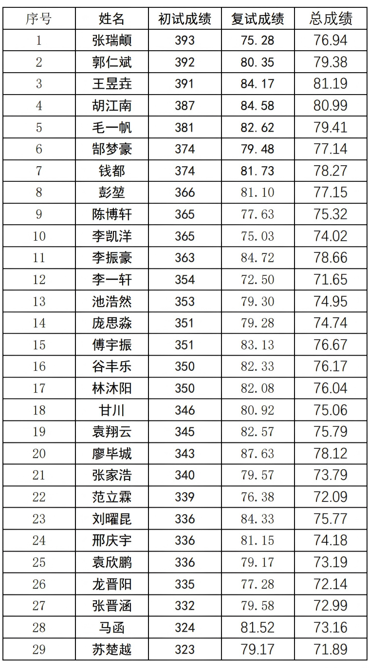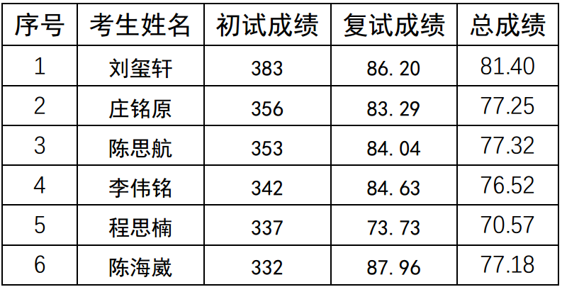 拟录取名单:
